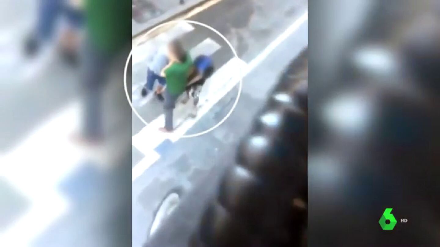 Le rodean, le quitan el reloj de forma violenta y se marchan caminando, tranquilamente; incluso le llegan a romper la camisa.