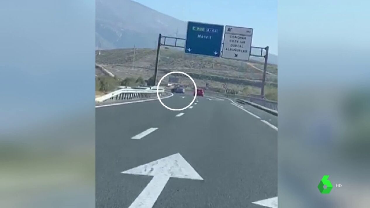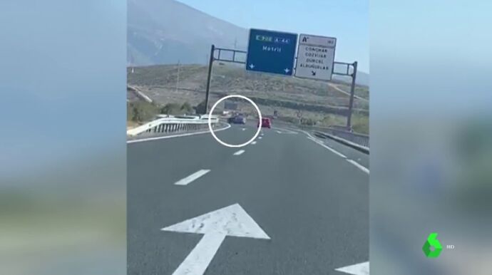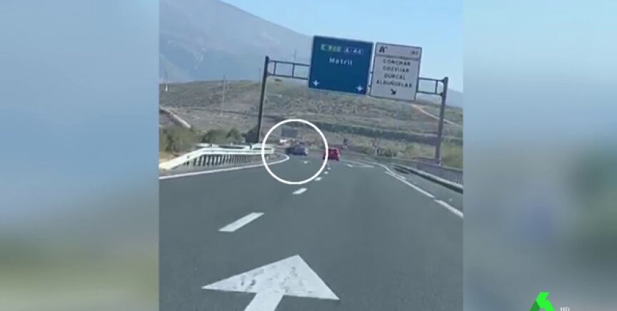 En el vídeo se puede observar cómo el conductor detenido circula pegado al coche que tiene delante en una autovía de Granada. En un momento dado sitúa su vehículo en paralelo y le embiste provocando que se salga de la calzada y vuelque; después se da a la fuga.