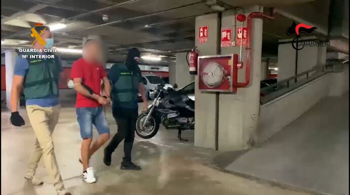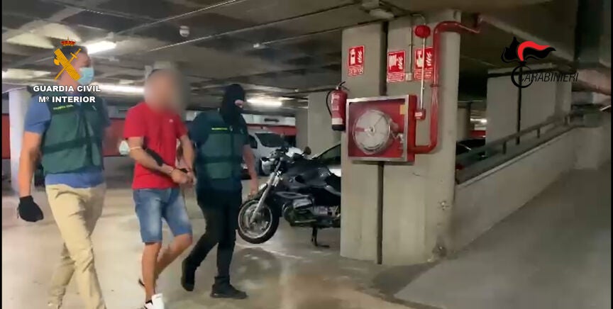 La Guardia Civil ha informado este domingo en un comunicado de que el detenido es el ciudadano italiano G.T, de 42 años de edad, natural de Vibo Valentia (Calabria), y huido de las autoridades italianas desde el año 2017 tras ser condenado a una pena de más de 19 años de prisión por delitos relacionados con el tráfico internacional de drogas y pertenencia a organización criminal.