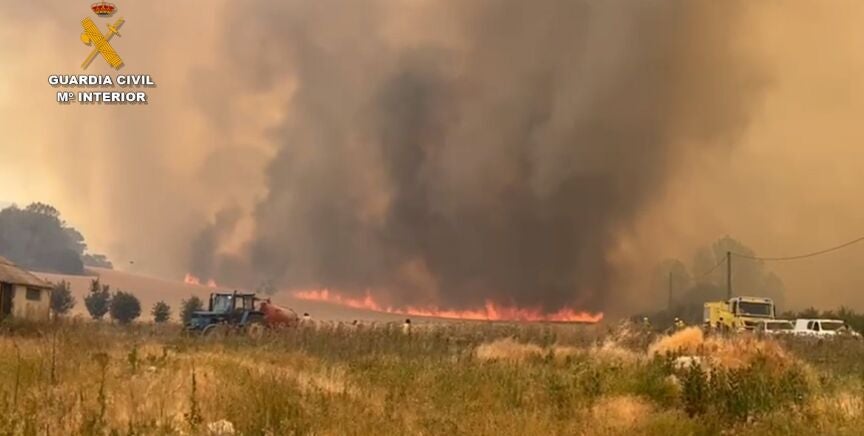 La Guardia Civil ha detenido al presunto autor del incendio forestal de nivel 2 de Sabinares del Arlanza en Burgos. Todo indica que el fuego, originado el domingo, fue causado por una cosechadora en una finca de cereal entre Tejada y Quintanilla del Coco. El dueño del vehículo habría realizado labores agrícolas entre las 12:00 y las 19:00 horas, franja horaria prohibida por la Junta de Castilla y León por la grave situación de riesgo de incendios. La investigación sigue abierta, ya que no se descarta la posible intervención de más personas en los hechos, según recoge la Guardia Civil.