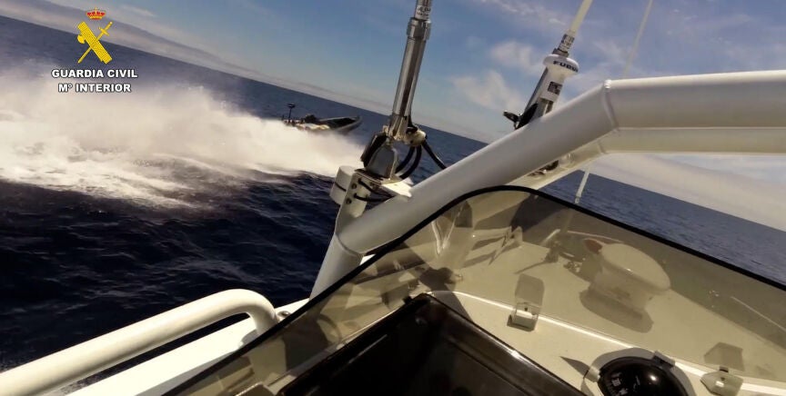 Los detalles Durante la persecución, uno de los tripulantes de la embarcación que transportaba los fardos cayó al agua tras salir despedido, siendo rescatado por una de las patrulleras de la Guardia Civil.