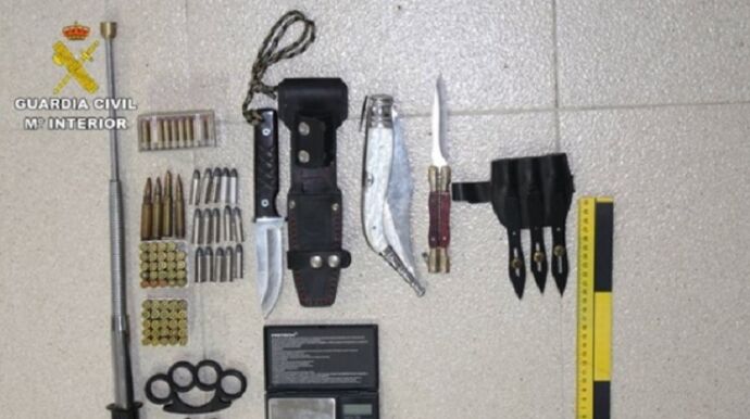 Se realizó la entrada y registro de esta vivienda, donde se intervinieron un total de 254 plantas de marihuana, así como diversas armas blancas y munición de armas de fuego. En concreto, dos llaves de pugilato, un bastón extensible, dos inhibidores de sonido de armas silenciadores, 43 navajas y dos hojas de arma blanca, 68 cartuchos del calibre nueve milímetros parabellum, cinco cartuchos del calibre 7,62 NATO, un cartucho del calibre 5,56, un cartucho del calibre 6,35, 20 cartuchos de fogueo, 50 cartuchos del calibre 22 y elementos varios para la manipulación y pesaje de la droga.