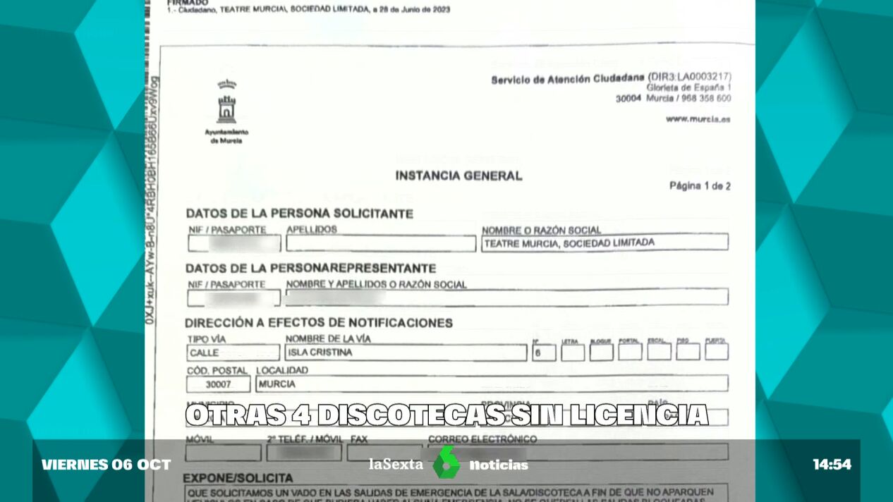 Un nuevo documento pone de manifiesto que el Ayuntamiento de Murcia tenía información para saber que Teatre, una de las discotecas afectadas por el mortal incendio que acabó con la vida de 13 personas, seguía funcionando pese a tener una orden de cierre desde el año 2022: el pasado mes de junio, el local de ocio nocturno había solicitado un vado.
