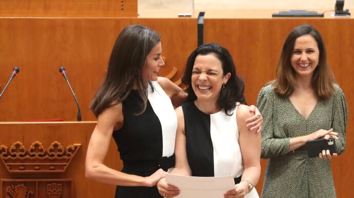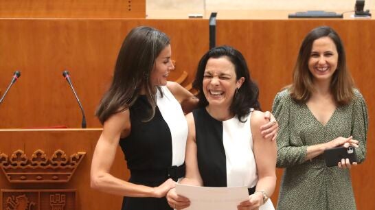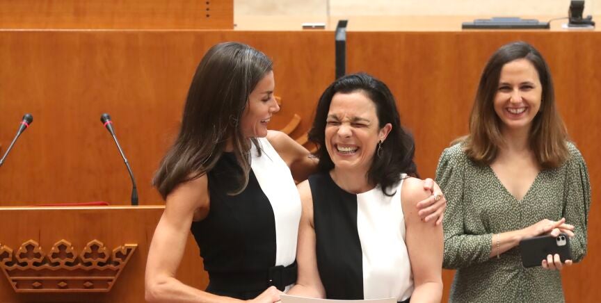 Doña Letizia se ha dado cuenta que iba igual vestida que Inmaculada Viva nada más entrar: mismo vestido, mismo cinturón y zapatos negro de salón. De hecho, al recibir a la premiada en el escenario ambas han compartido un divertido momento en el a las dos se les han escapado unas risas al observar la postal. Incluso se han dado un emotivo abrazo.