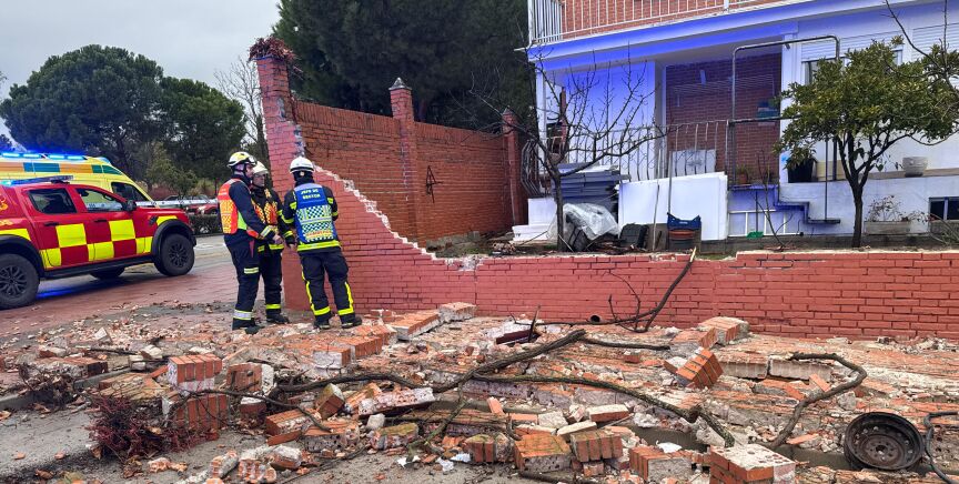 Dos heridos graves tras el derrumbe del muro de una vivienda en Getafe, Madrid