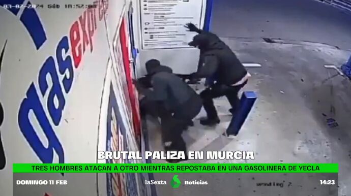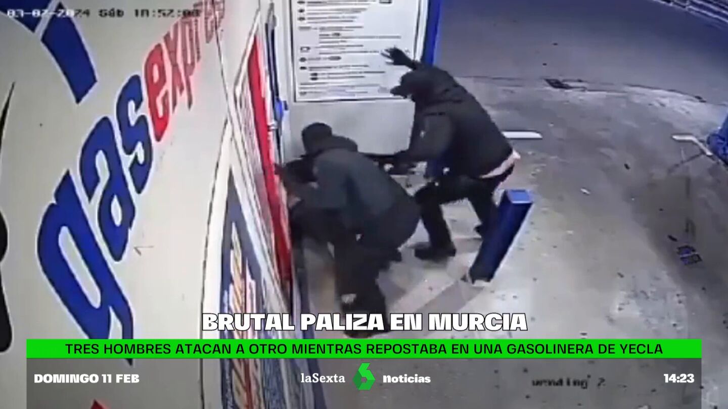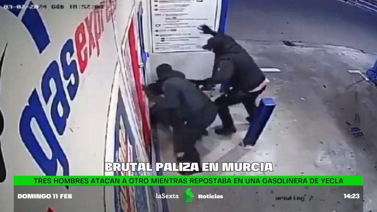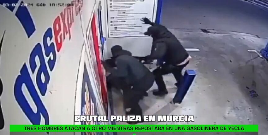 Dos personas han propinado una brutal paliza a un hombre en una gasolinera de Yecla, Murcia. En las imágenes captadas por las cámaras de seguridad de la estación de servicio, y recogidas en el vídeo principal de esta noticia, se puede ver cómo los dos individuos se acercan a la víctima y comienzan a propinarle golpes por todo el cuerpo.