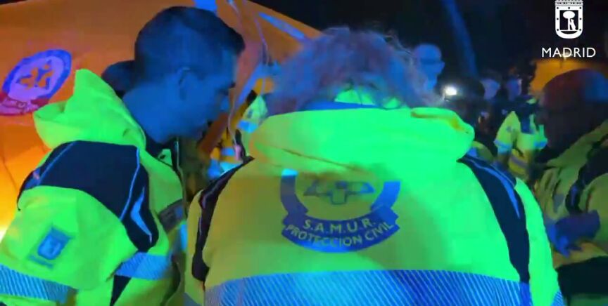 A la llegada de los sanitarios del Samur-Protección Civil al lugar de los hechos el joven se encontraba en estado de shock, con mala irrigación de la sangre a los tejidos y muy agitado. No obstante, los efectivos del Samur-PC lograron estabilizarle y le trasladaron con pronóstico muy grave al Hospital 12 de Octubre en un convoy sanitario que ha sido escoltado durante el trayecto hasta el centro hospitalario por la Policía de Madrid.