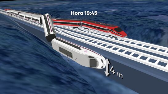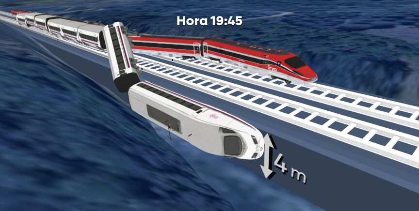 Precisamente, sobre estas líneas, puede observarse una recreación de lo que podría haber ocurrido: el coche seis del Iryo que iba de Málaga a Madrid descarrila a la altura del municipio cordobés arrastrando a los otros a otro dos, el siete y el ocho. Unos segundos después, el tren Alvia que iba de Madrid a Huelva se encuentra con esos vagones.