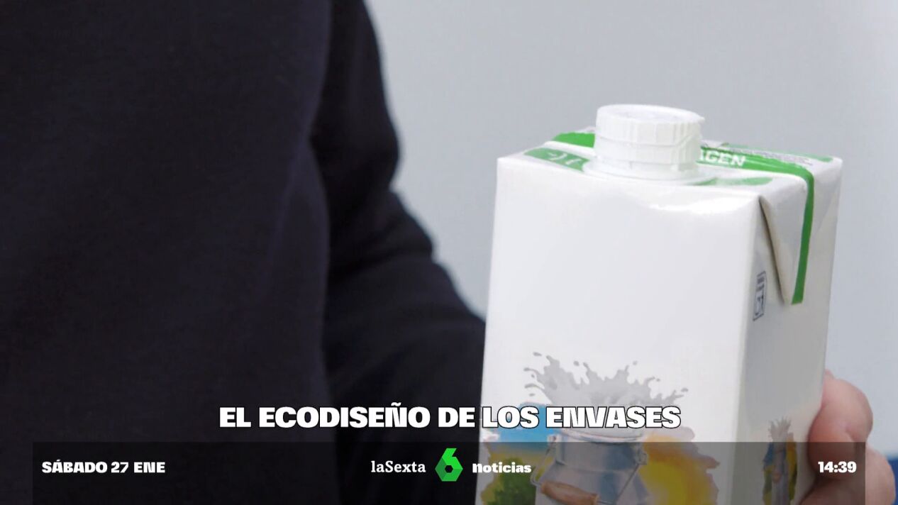 Un ejemplo de 'ecodiseño' son aquellos briks de leche que ahora tienen su tapón anclado al resto del recipiente para evitar que termine donde no debe. Joel Llovera, miembro del grupo Lactalis Iberia, señala al respecto que "al estar el tapón atado al brik, no se pierde en la naturaleza, se recicla mucho mejor y no termina en los océanos".