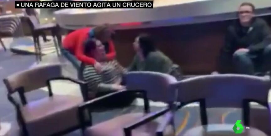Algunos pasajeros se encontraban en el piano bar del barco cuando, de repente y sin previo, aviso sillas, mesas y el resto de mobiliario salieron rodando.