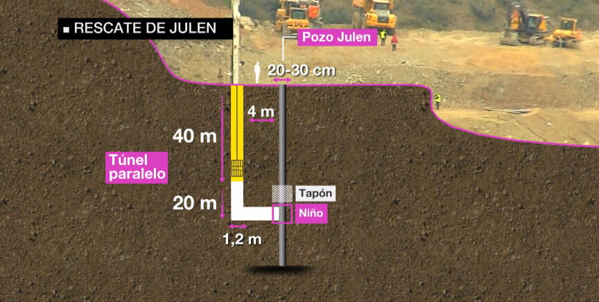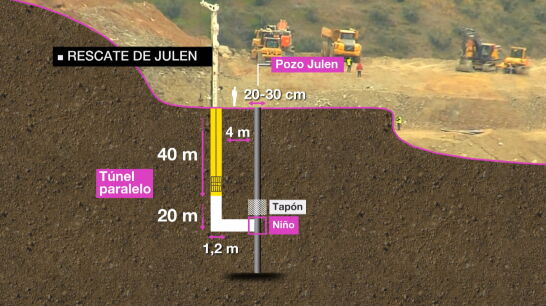El túnel paralelo para el rescate de Julen debe alcanzar 60 metros y después intervendrá el equipo minero haciendo una galería horizontal.