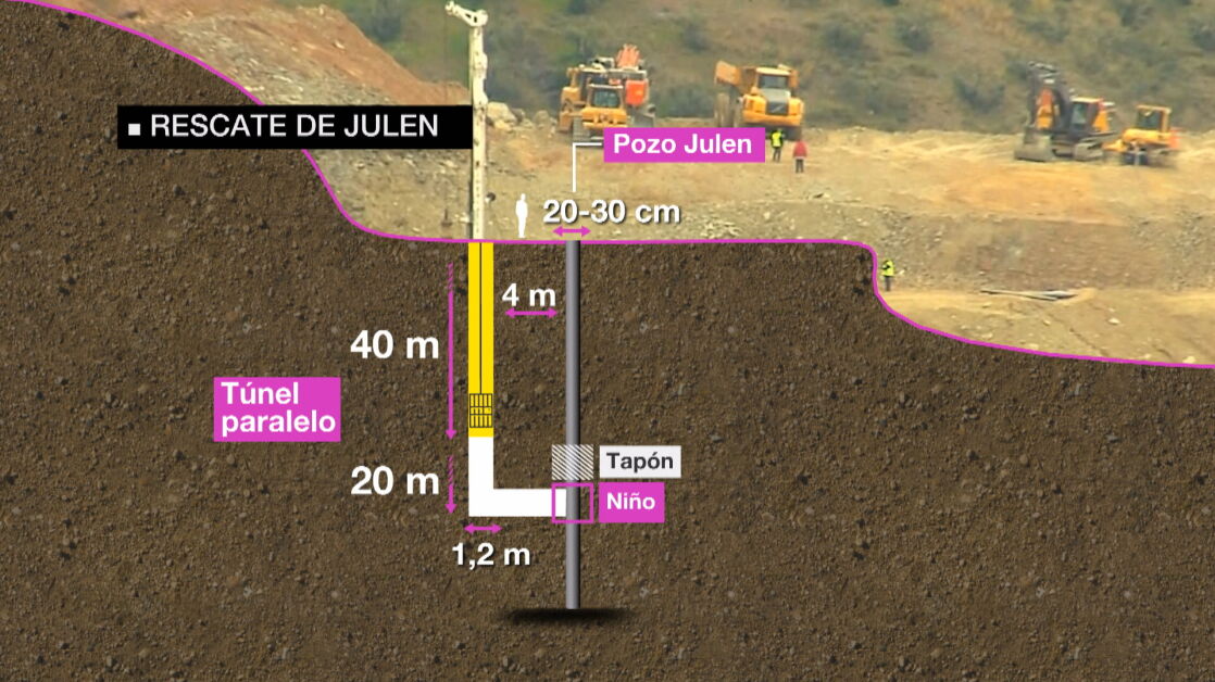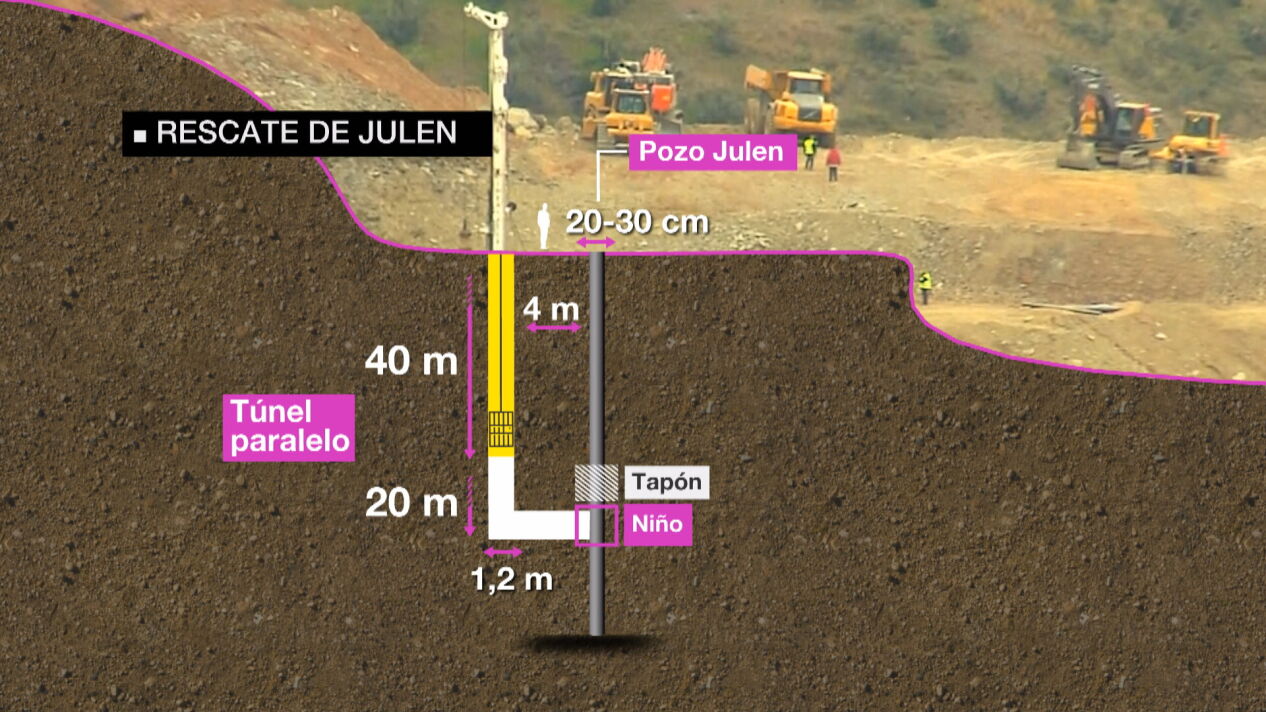 Según ha dicho, el dispositivo de búsqueda espera "llegar a la cota de los 60 metros al final de la noche". Después, será necesario encamisar el pozo, hacer trabajos auxiliares y finalmente los mineros intervendrán.