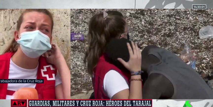 "Es un chico desesperado pensando que su amigo se moría", explica la trabajadora de Cruz Roja, que es de Móstoles, aunque su madre procede de Ceuta. "La gente que estaba allí me decía que eso era cuento. No dejaba de abrazarme", dice.