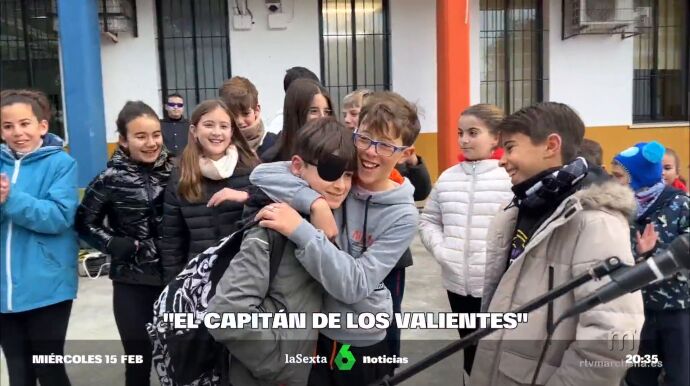 "Eres el capitán de los valientes; en general, de la ilusión. Ese faro que ilumina la razón, un héroe sin capa", ha narrado uno de sus compañeros ante un abarrotado patio que se llenaba de amor hacia el pequeño de 12 años.