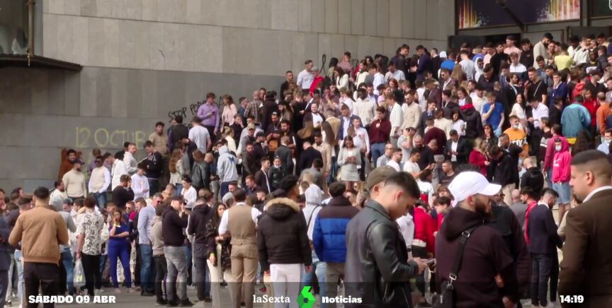 Desde primera hora de este sábado, el ambiente en los alrededores del pabellón ha sido de jóvenes llegados de todo el mundo, muchos de ellos vestidos como si fueran ejecutivos, imitando la estética de los líderes del grupo. Algunos se han mostrado pocos amables con la prensa, mientras que otros nos han propuesto apuntarnos a la academia investigada: "Pagad la academia; tenéis siete días de prueba; si yo te digo algo que es mentira, te vas y te devuelven la pasta", asegura un joven.