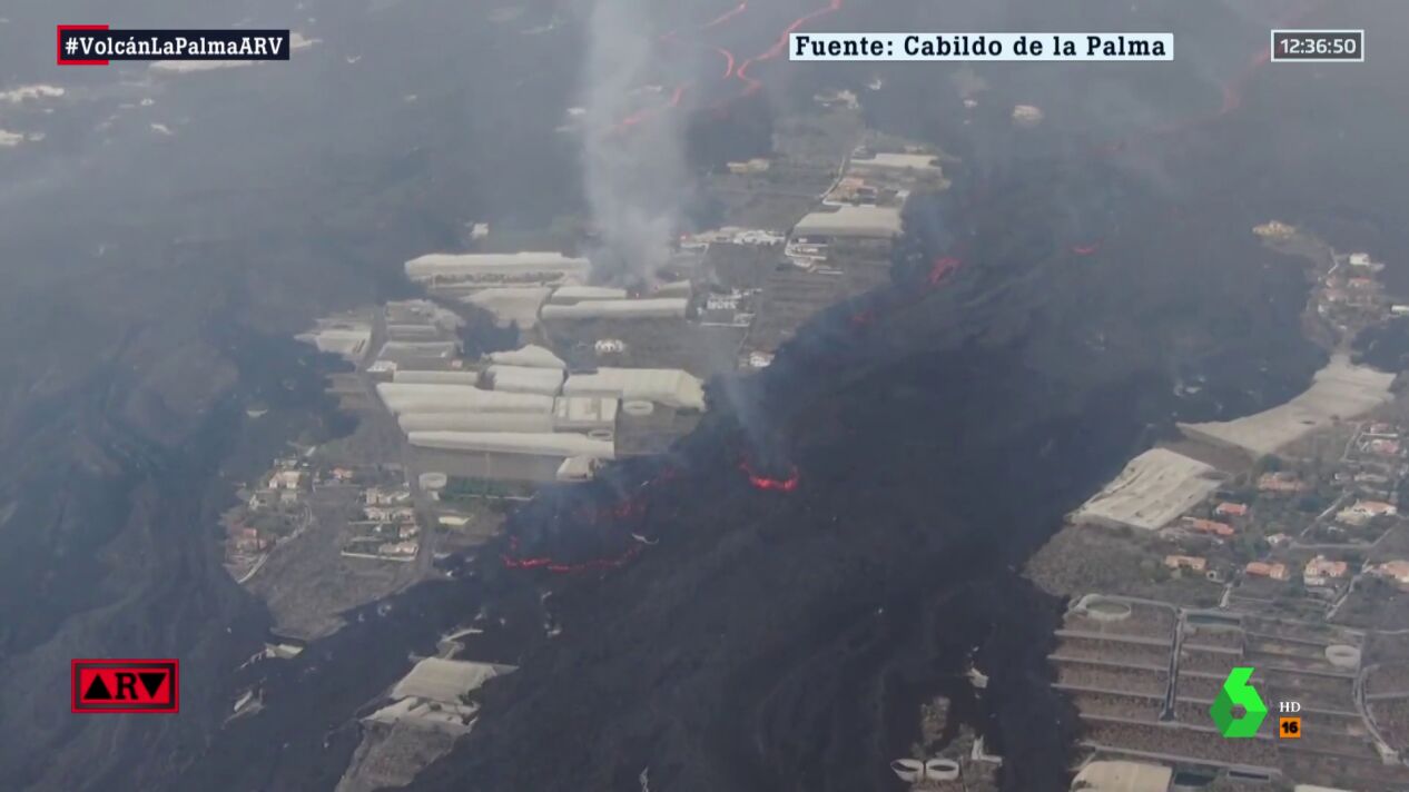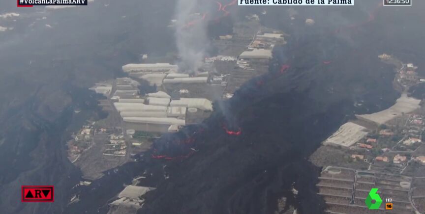 La superficie total afectada por la erupción volcánica en la isla de La Palma se estima que supera ya las 1.073 hectáreas, con una anchura máxima entre coladas exteriores de unos 3.300 metros.