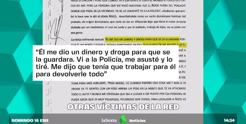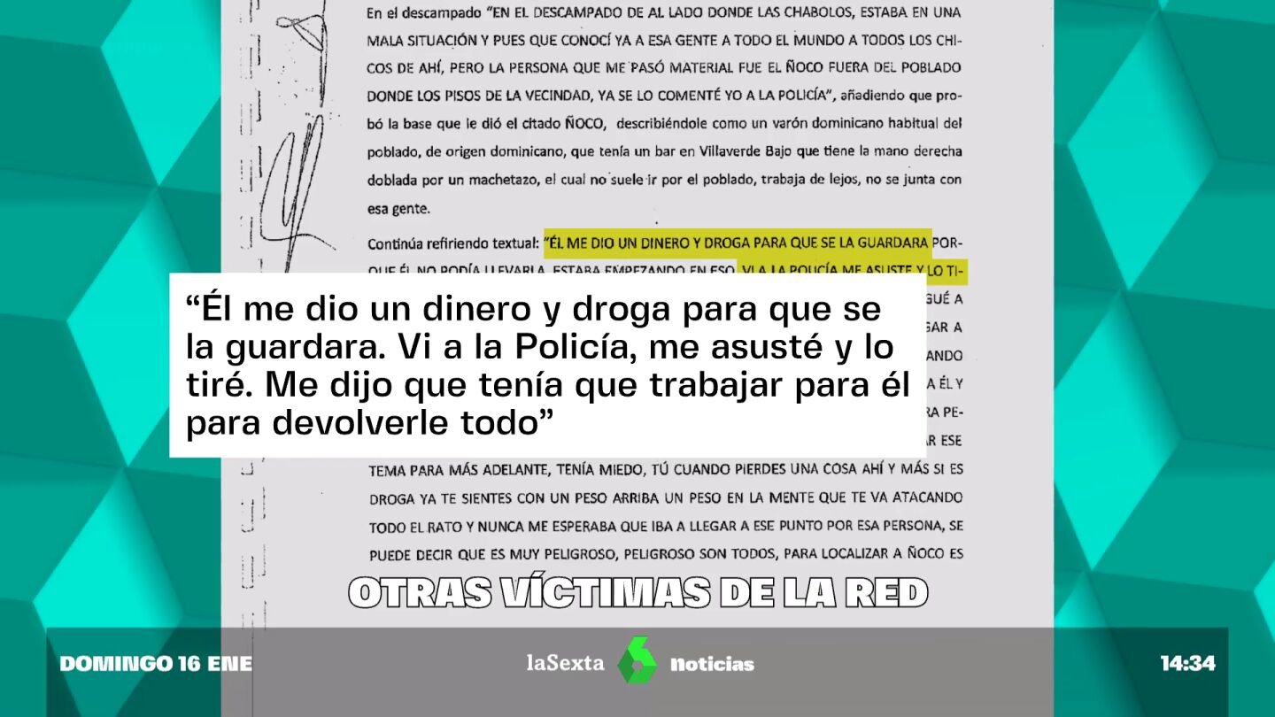 La historia de otra testigo, en este caso una joven que no estaba en ningún centro de menores, es igual de escalofriante. La menor afirma que se encontraba en una mala situación cuando conoció a 'El Ñoco', acusado de un delito contra la salud pública y de coacciones.