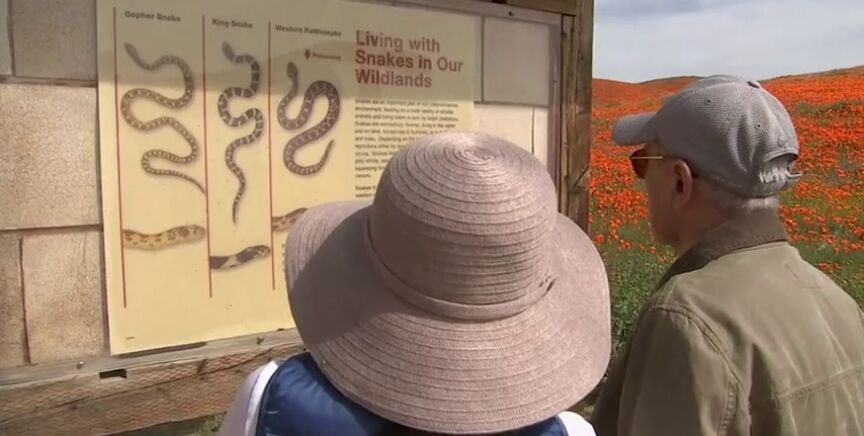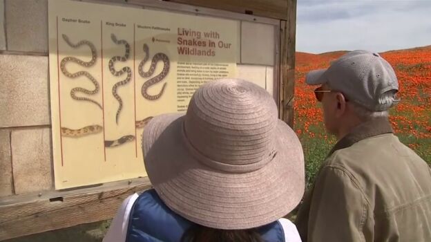 Marzo es el mes de la floración de amapolas en California. Y entre estas coloridas praderas hay unos animales ante los que, por lo visto, no sabemos muy bien cómo actuar. Un cartel avisa a los visitantes: No persigan a las serpientes, no moleste a nada del entorno natural, sólo obsérvelo.