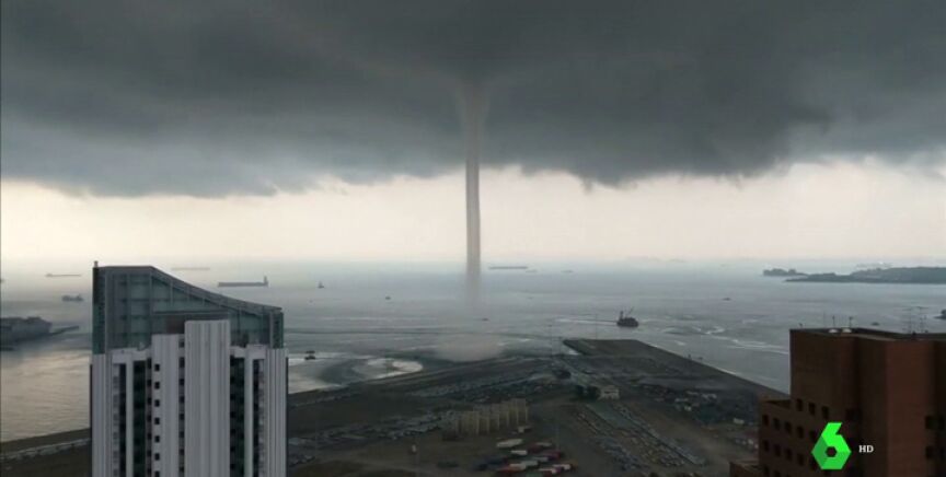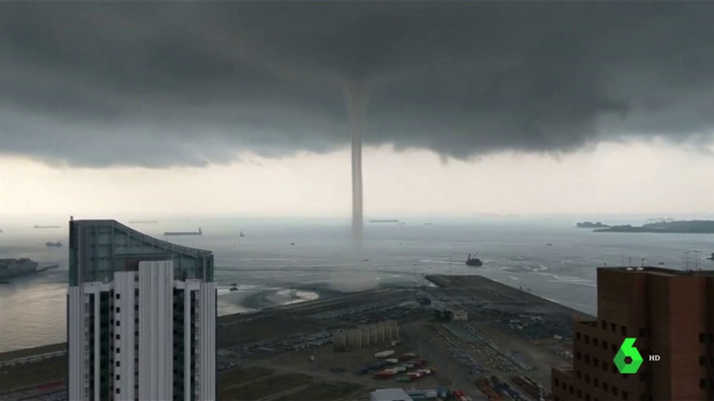 Espectaculares imágenes de una enorme tromba de agua en la costa de Singapur