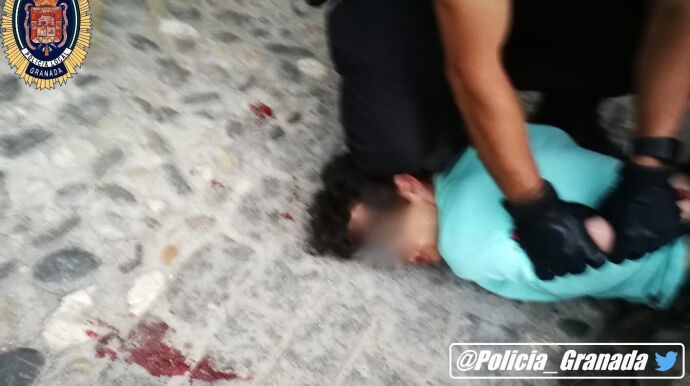 Según los agentes, la gran cantidad de sangre que se observa en las terribles imágenes pertenece a la víctima y al propio atacante, que se ha seccionado un vaso sanguíneo al apuñalar a la mujer. Aunque en un principio se apuntó a que el hombre podría haberse autolesionado, la Policía Local de Granada ha precisado que no fue ese el caso, sino que se cortó en un dedo durante el ataque.
