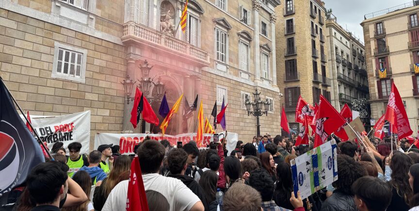 En Barcelona, unos 1.000 estudiantes, según la Guardia Urbana, se han manifestado por el centro de la ciudad para pedir la dimisión del presidente de la Generalitat valenciana, Carlos Mazón, por la "negligencia" de su Gobierno en la gestión de la DANA y en solidaridad con los afectados.