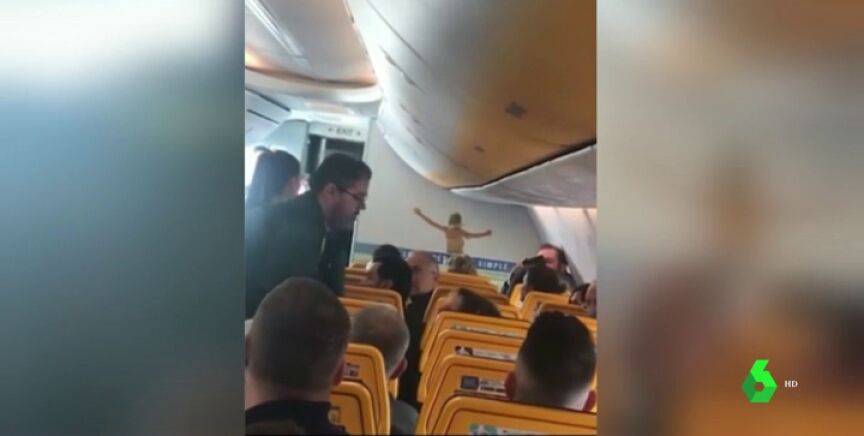 La mujer, que posteriormente comenzó a gritar a los agentes de la Guardia Civil, ha sido expulsada a la fuerza por las autoridades entre los aplausos del resto del pasaje.