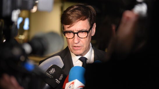Entre los asistentes... El president de la Generalitat, Salvador Illa, y el ministro de Industria, Jordi Hereu, son algunas de las personalidades que se han acercado hasta el tanatorio barcelonés de Les Cortes para dar el último adiós a Isak Andic, fundador de Mango.