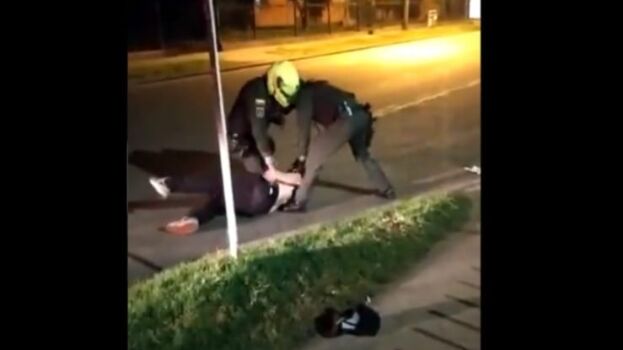 "Por favor, ya", "agente, le ruego", fueron las frases que dijo el hombre cuando estaba inmovilizado por dos agentes en una calle del barrio Santa Cecilia, en el occidente de la capital colombiana, y que provocaron la indignación entre los ciudadanos que protestaron frente a los Comandos de Acción Inmediata (CAI) de la Policía.