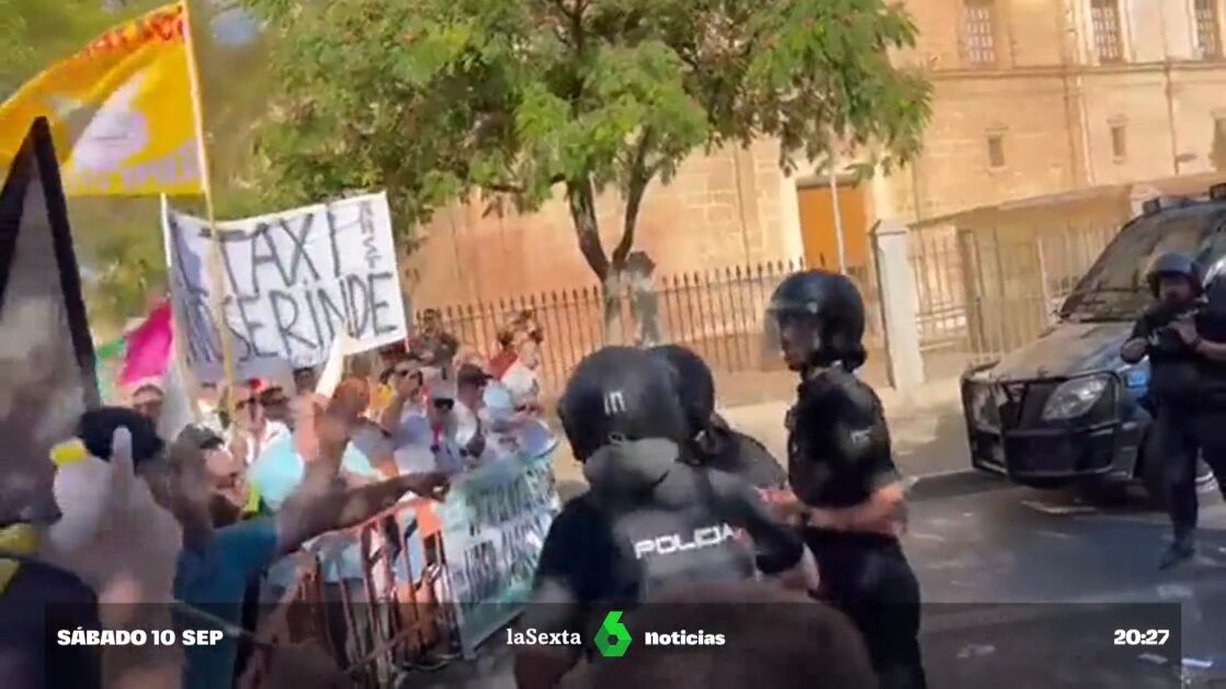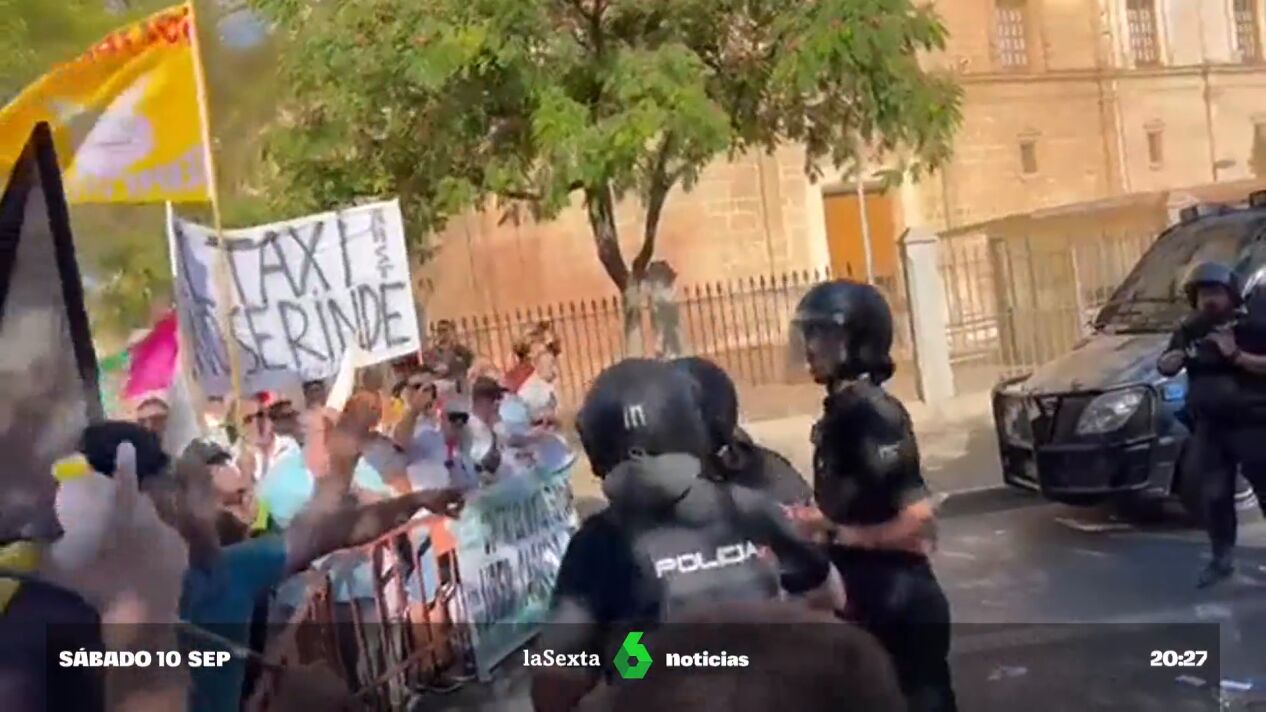 La protesta acabó con disturbios tras momentos de tensión. Ocurrió el pasado jueves durante una protesta contra la regulación de los VTC en Sevilla.