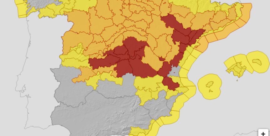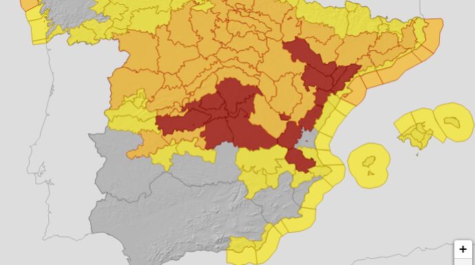 De este modo, un total de 47 provincias y Ceuta estarán este sábado en riesgo debido a estos fenómenos. En el caso de la nieve, hay avisos rojos en Teruel, Zaragoza, Albacete, Cuenca, Guadalajara, Toledo, Tarragona, Madrid, Castellón y Valencia.