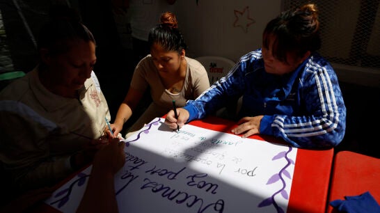 "Por ser mujeres nos meten a la cárcel injustificadamente, abusan de nosotras y nos desaparecen", dice Susana Campos, recluida en el Penal de Barrientos, en el central Estado de México, mientras propone una consigna que dibujará en una cartulina junto con sus compañeras. Ella tampoco podrá acudir a la manifestación del 8M, pero su pancarta, junto a otras elaboradas en diferentes centros penitenciarios del país, las llevarán las integrantes y aliadas de la organización La Cana.