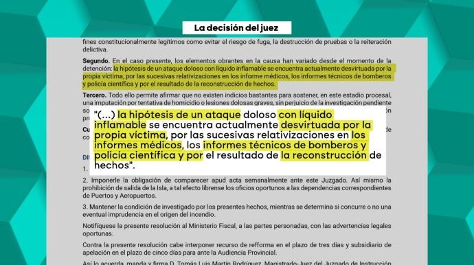 En un giro inesperado del caso de la joven de Las Palmas, que sufrió quemaduras en el 95% de su cuerpo en un incendio en julio, el joven migrante magrebí inicialmente acusado ha sido liberado. Tras escuchar a la menor, su declaración coincide con la del joven: el incendio fue accidental y él intentó ayudarla. En el momento del suceso, las protestas contra la inmigración se intensificaron, alimentadas por Vox, que vinculó el incidente con la "inmigración ilegal". Sin embargo, pruebas como un vídeo donde ambos se abrazan tras salir de la casa y diversos informes técnicos desmontan la hipótesis de un ataque intencionado.