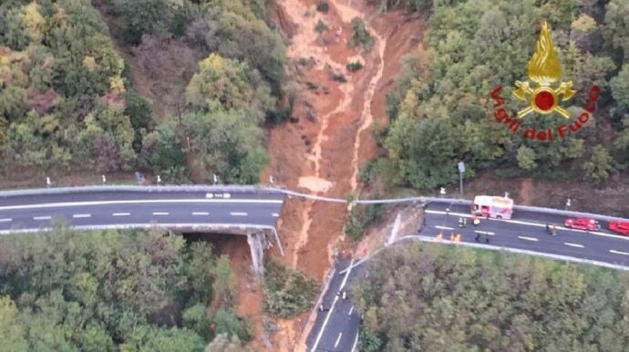 Las fuertes lluvias han azotado Italia con fuerza y han causado la caída de un un tramo de unos 30 metros de un puente en la autopista A6, que conecta Turín y Savona (norte), gestionado por el Grupo Gavio.