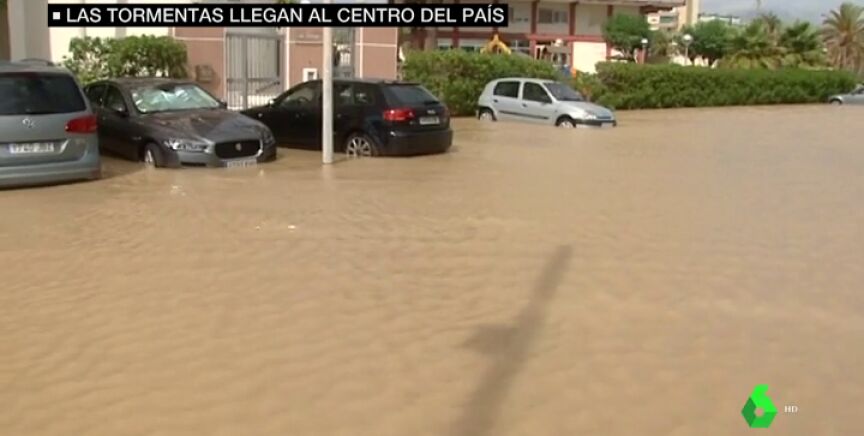 Destrozos también en Murcia. En Jumilla han caído 37 litros por metro cuadrado, 14 de ellos se acumularon en tan solo diez minutos.