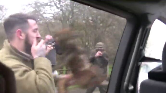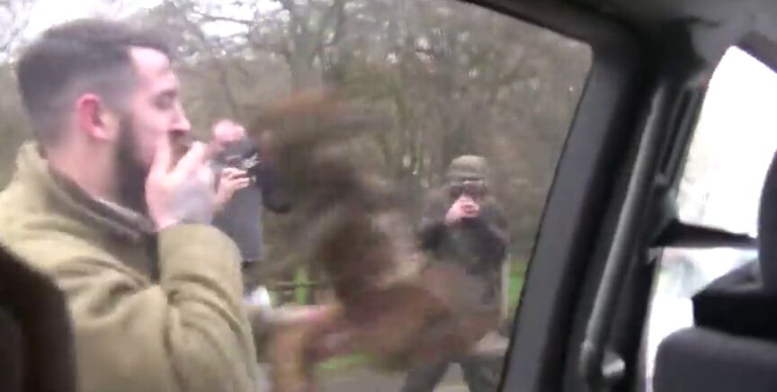 Las sobrecogedoras imágenes, advertimos de su dureza, muestran la agresividad del cazador al conocer que había un vehículo de la asociación 'Saboteadores de la caza' vigilando su cacería en el Parque Nacional 'Peak District' de Inglaterra.