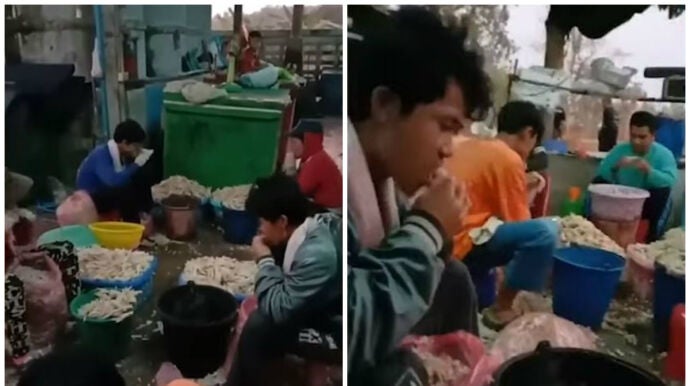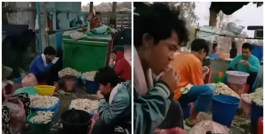 Graban a los empleados de una fábrica de Tailandia limpiando el pollo que venden con la boca