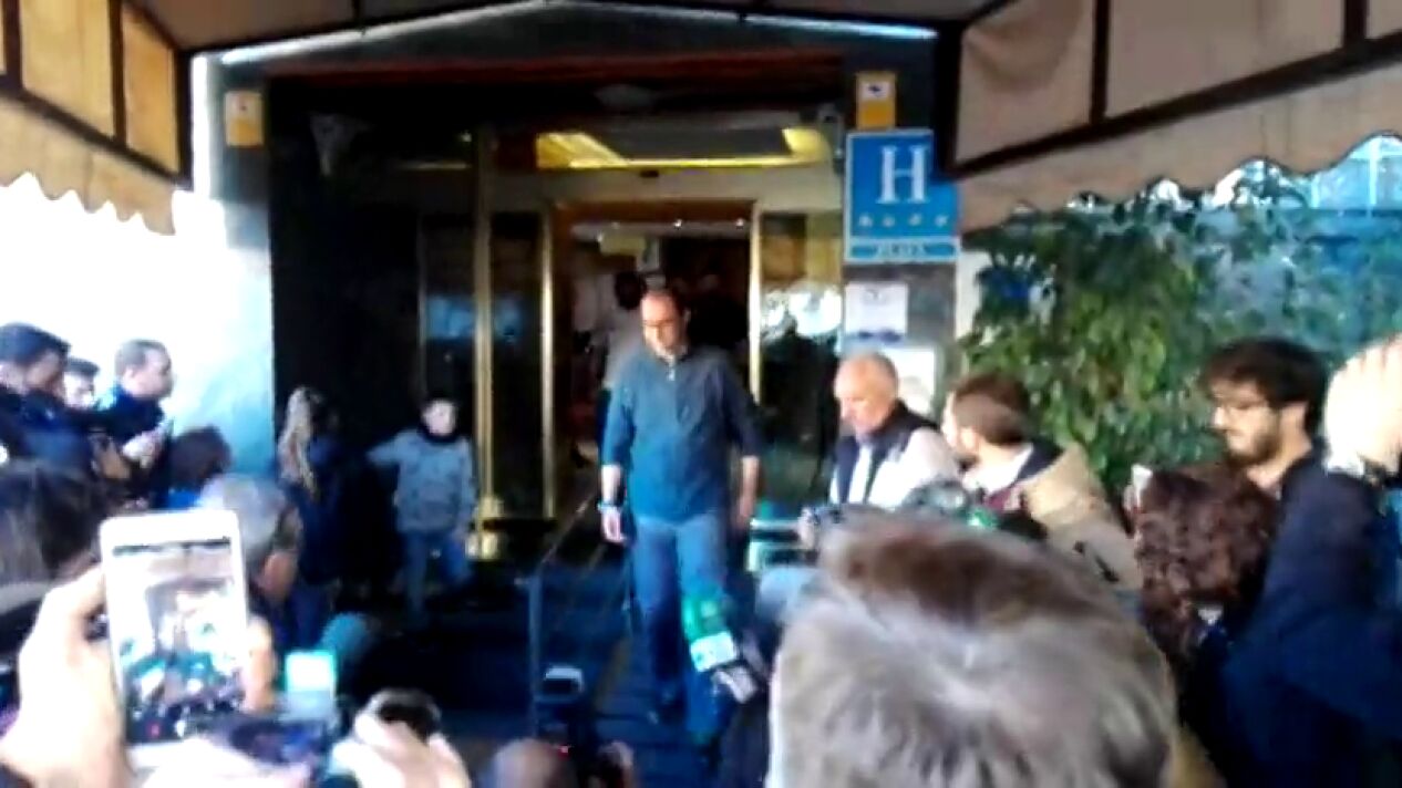 El hombre ha sido recibido por las personas que esperaban a las puertas del hotel con aplausos y gritos, como se puede ver en el vídeo, tras el rescate del pequeño Julen.