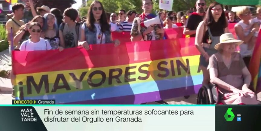 Una manifestación ha recorrido el centro de Granada hasta llegar al Ayuntamiento. Este año, el lema es 'Mayores sin armarios' y con él se pretende dar las gracias a todos los activistas LGTBI que hace décadas eran considerados, por su condición sexual, delincuentes o locos.