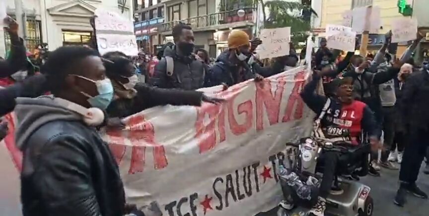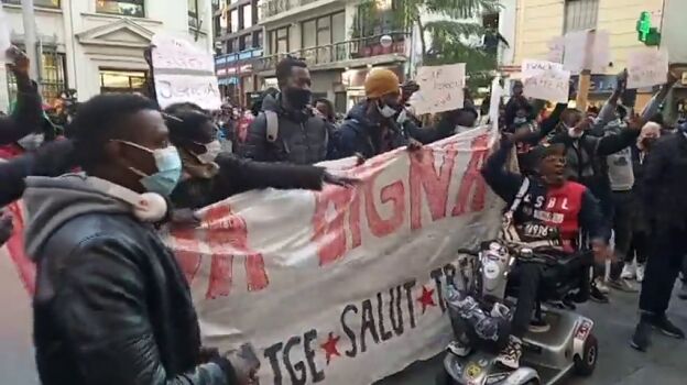 Tras el incendio en una nave de Badalonaen el que han fallecido tres personas, un grupo de unas 50 personas, entre ellos migrantes subsaharianos supervivientes del incendio, ha partido desde el lugar de la tragedia manifestándose al grito de "Albiol, racista" o "Dignidad y justicia".