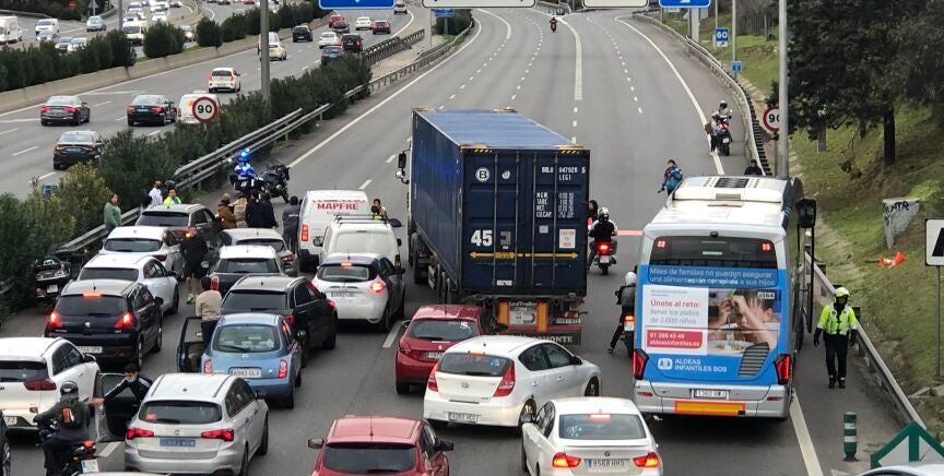 Un grupo de activistas corta la M-30 provocando retenciones kilométricas en plena operación salida