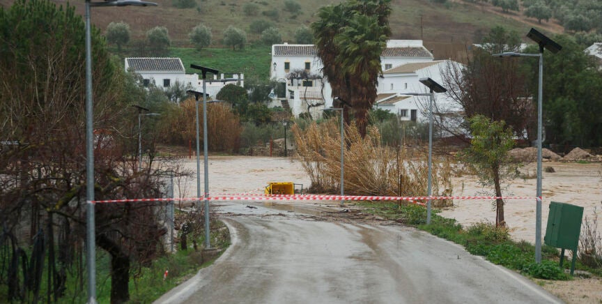 La Guardia Civil busca a una mujer que ha caído a un río en Sayalonga (Málaga) a última hora de esta tarde, en pleno temporal por la borrasca Leonardo.