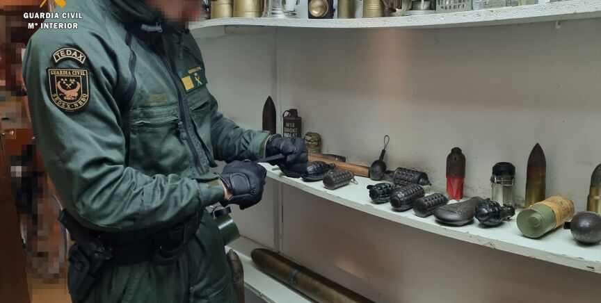 Tras esto, el grupo especialista en explosivos, el TEDAX, se desplazó al domicilio para inspeccionar el armamento y retiró la granada de mano activa para destruirla con seguridad.