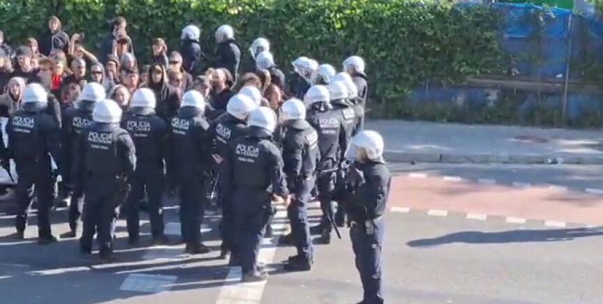 En el lugar se han vivido momentos de tensión, con gritos de los manifestantes cuando los agentes de la Guardia Urbana, que van equipados con material antidisturbios, les han pedido que se muevan. Allí se ha desplegado un amplio equipo de camiones para sacar material y también equipo de limpieza municipal.