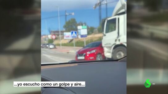 El aparatoso accidente se ha saldado sin heridos, a pesar de las impactantes imágenes. El conductor del camión arrolló al coche y, según su propio testimonio "sin darse cuenta", siguió arastrándolo numerosos metros.