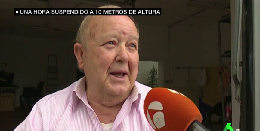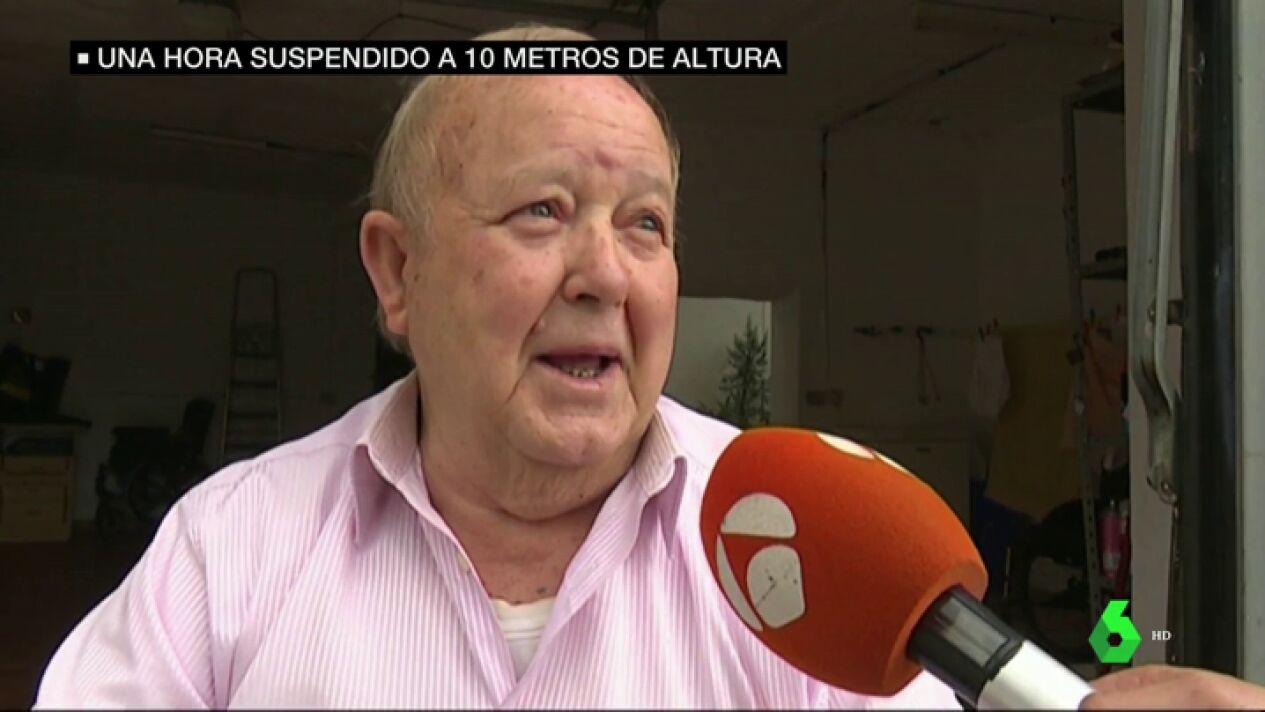 Juan, de 76 años, estuvo más de media hora atrapado en su coche al borde del abismo en Icod de los Vinos, Tenerife. A pesar de la impactante imagen, asegura que estaba tranquilo.