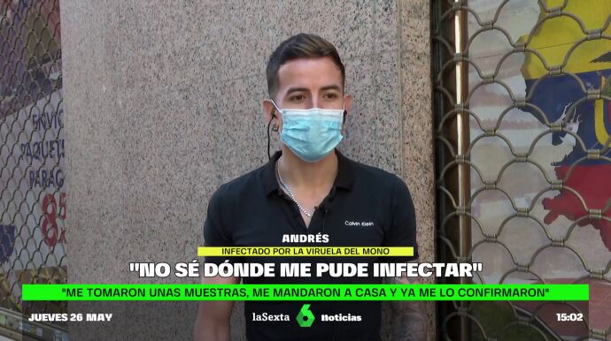 Andrés es uno de los pacientes diagnosticados con la viruela del mono en España, y el primero en hablar públicamente. Asegura que desconoce dónde se pudo infectar, ya que no ha estado en ninguno de los focos investigados por Sanidad: ni en la fiesta de Maspalomas, Gran Canaria, ni en la sauna de Madrid.