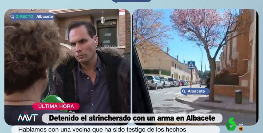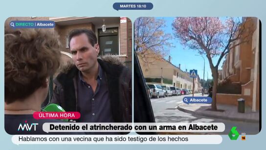 Una vecina del hombre que estaba atrincherado en su casa de Albacete con un arma de fuego ha contado en Más Vale Tarde cómo vivió el suceso. "Escuchamos a una chica gritar y la Policía empezó a llegar y a acordonar la zona", relata.