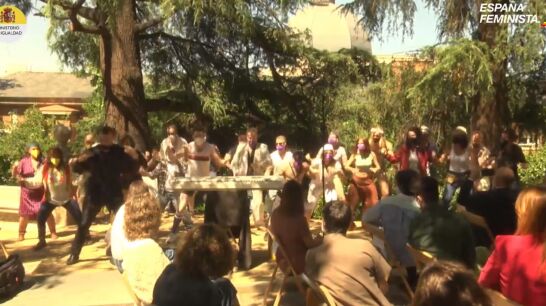 Una actuación que ha concluido con una haka, una danza tradicional maorí -que habitualmente representan los equipos neozelandeses en competiciones deportivas-, con mensajes reivindicativos, al grito de: "¡Solo importa lo esencial!" o "¡Ley Trans ya!". El momento puede verse en este vídeo de Igualdad, a partir del minuto 01:15:12: