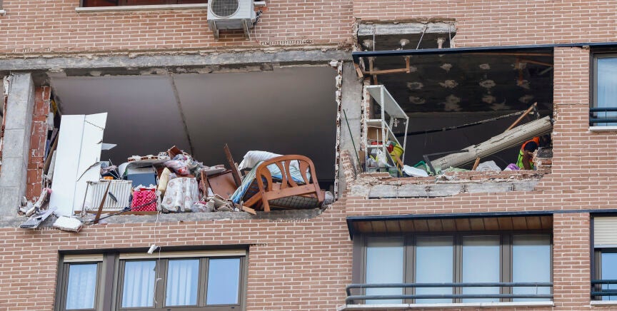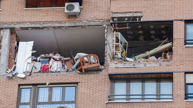La explosión de gas ha afectado completamente a la vivienda que ha sufrido daños en toda la tabiquería interior y ha provocado la caída de escombros y material de carpintería por la fachada, ha informado José Luis Legido, supervisor de Bomberos de Madrid.