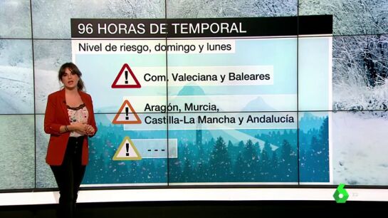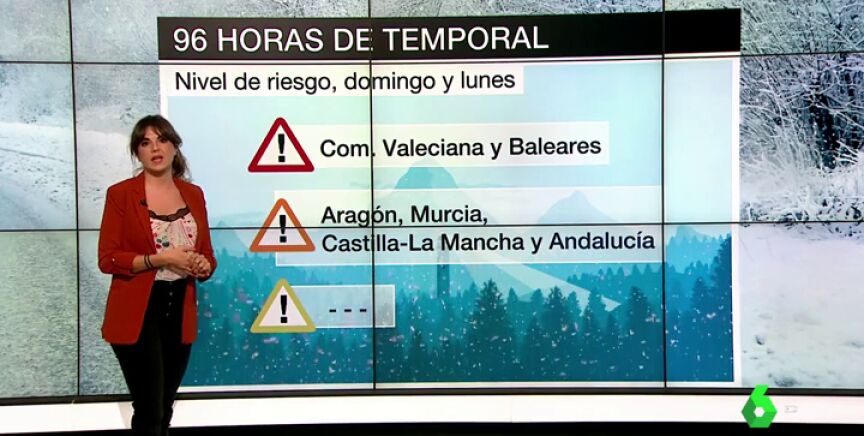 Habrá que seguir muy pendientes de la Comunidad Valenciana y Baleares, con avisos rojos; también hay que prestar especial atención a zonas de Aragón, Murcia, Castilla-La Mancha y Andalucía, con alertas naranja. A lo largo de la semana se pondrá el foco en Cataluña, que a partir del martes activará la alerta roja. En Aragón y Comunidad Valenciana también presentará una situación complicada por el aviso naranja.
